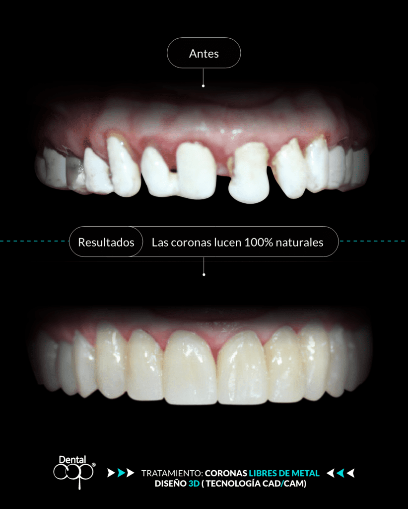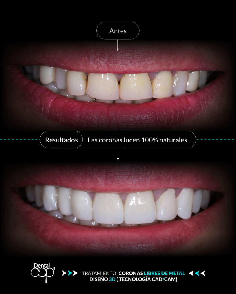 Ofrecen una restauración libre de metal, con alta durabilidad, gran resistencia y una apariencia natural que se integra perfectamente con el resto de la sonrisa.
